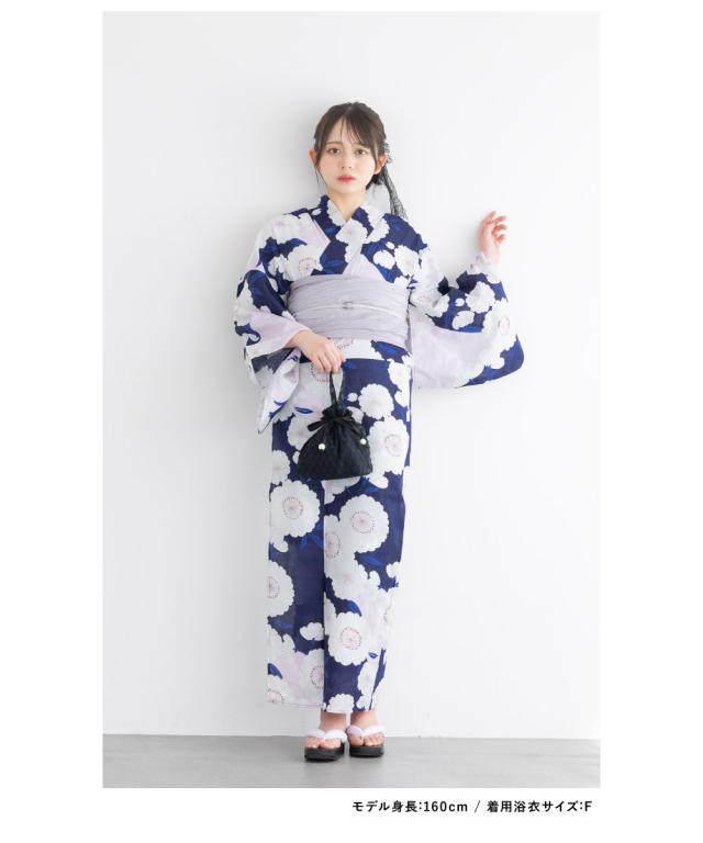 浴衣 セット レディース 浴衣セット ボヌールセゾン 兵児帯 ネイビー 白 薄灰 桜 花柄 コーディネート済み おしゃれ かわいい 簡単 涼しい 夏 花火 下駄 フリーサイズ 送料無料