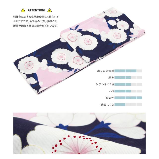 こちらの女性向け浴衣で、暖かい季節の和装をお楽しみください。