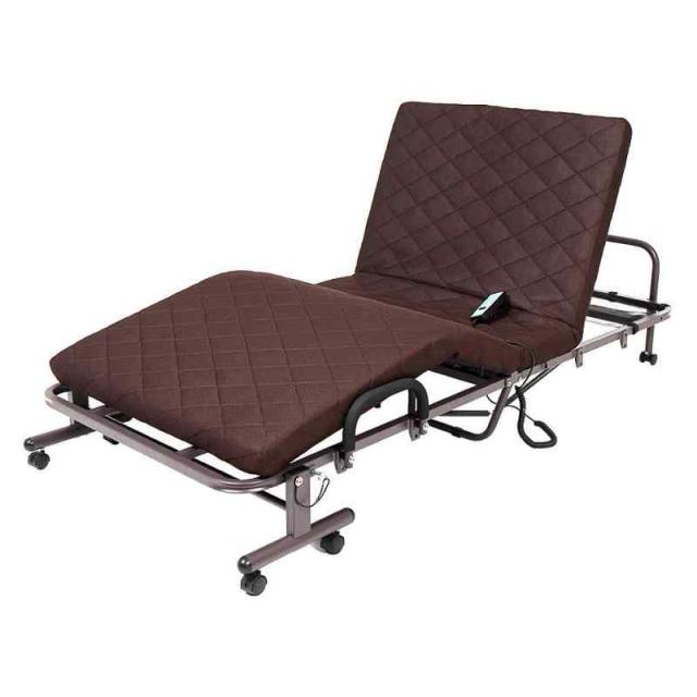 ビータ(Vita) 電動折りたたみメッシュキルトベッド ブラウン 幅91×奥行201×高さ42(床面32)cm シングル 電動リクライニング 来客用 介護用 移動 折りたたみ 立ち上がりやすいハイタイプ 高反発マットレス