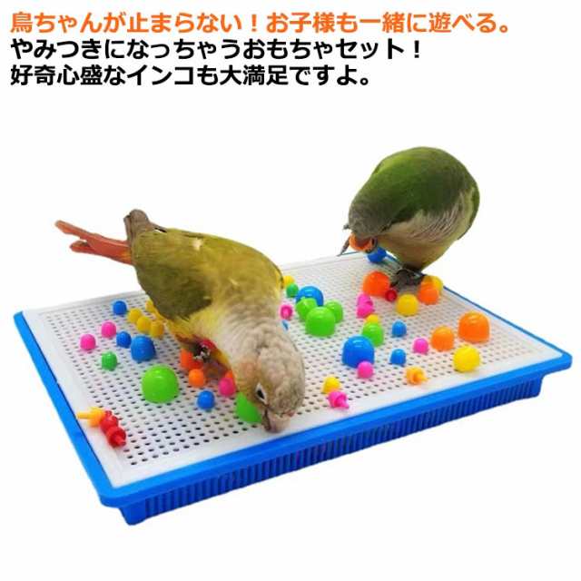| 鳥ちゃんが止まらない!お子様も一緒に遊べる。やみつきになっちゃうおもちゃセット!好奇心盛なインコも大満足ですよ。 室内での放鳥時に、小鳥と一緒に遊べます。※本品は手のりとして飼育された小鳥専用です。 机の上?ケージの上など、お好きな場所が小鳥の楽しい遊び場 になります。 ストレス発散ゃ日常的な遊びにおすすめ! 自由な組み換えが可能で、 飼い主のあなたにも楽しめます。 小鳥の生活も豊富になれる! | |
