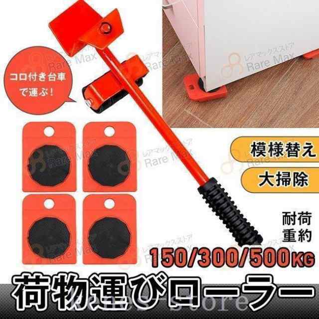重量物移動荷物運びローラー持ち上げ棒四隅用コロ付き台車キャスター4個付360度回転方向転換家具家電大型家具移動大掃除引っ越し工具運搬
