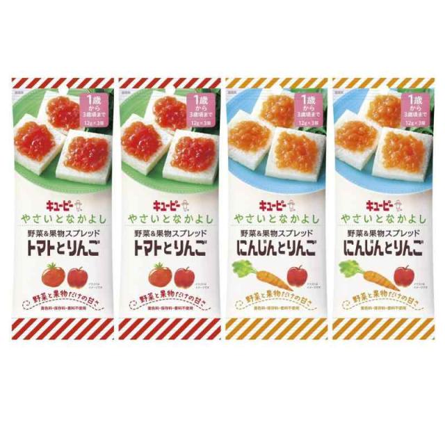 野菜と果物だけの甘さ キューピー やさいとなかよし野菜&果物スプレッド トマトとりんご/にんじんとりんご 2種類(12g×3個)×2袋 計4袋セット
