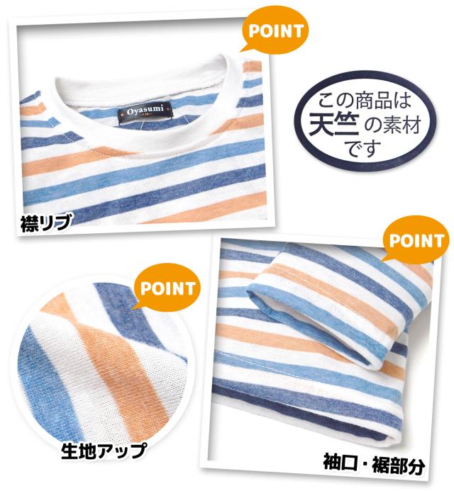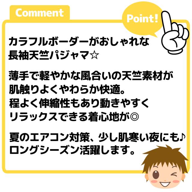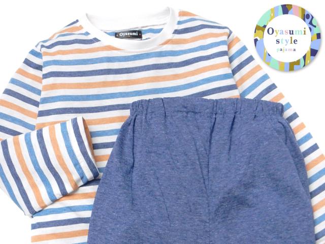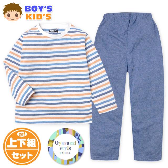 【送料無料】男児 キッズ 天竺 長袖 パジャマ 上下組 ボーダー 綿混 薄手 子供服 男の子 120cm 130cm my-0098a-nv【メール便対応】