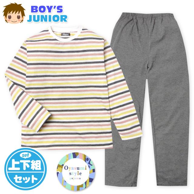 【送料無料】男児 ジュニア 天竺 長袖 パジャマ 上下組 ボーダー 綿混 薄手 子供服 男の子 140cm 150cm 160cm my-0098d-cc【メール便対応】