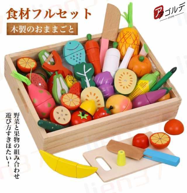 木製 おままごとセット 素材:食材フルセット ご注意事項: マグネットパズルの破損によりネオジム磁石を誤飲し、腸管壁等を穿孔する事故が発生しています誤飲事故防止のため、マグネットパズルを子どもに使用させる際は、こまめに破損していないかの点検をおこなってください 対象年齢を確認し、対象年齢未満の子どもがいるご家庭では保護者の目の届くところで使用させるようにしてください 万一、ネオジム磁石を誤飲した可能性がある場合には、直ちに医師の診察を受けてください