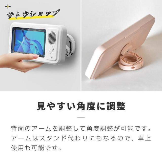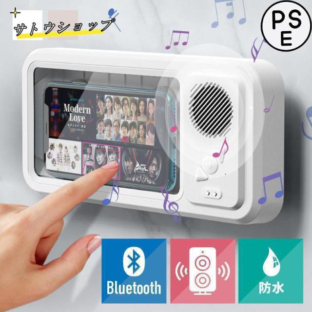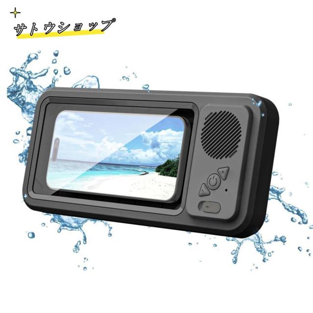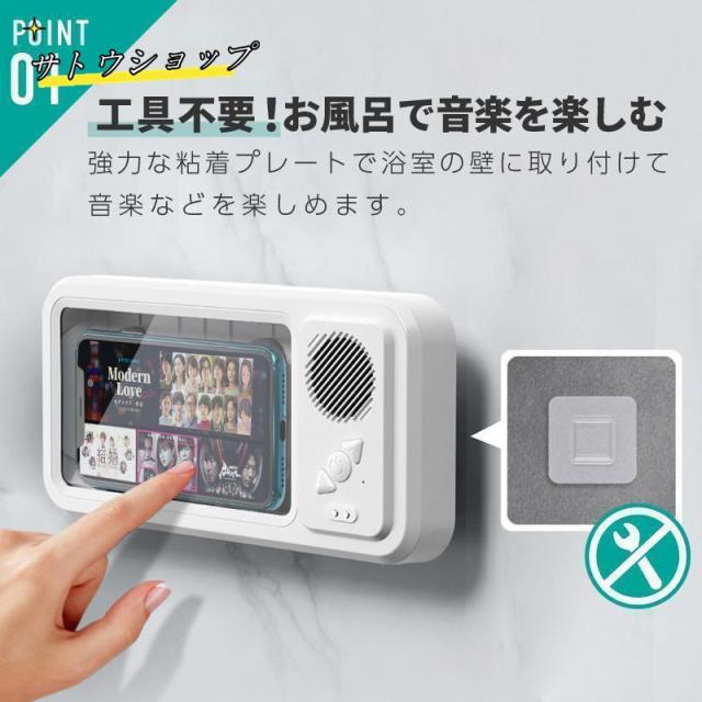 防水ケース お風呂 透明 クリア Bluetooth ワイヤレス スピーカー スマホカバー スマホケース スマホホルダー 壁掛け&マグネット 充電 IPX5防水 角度調整 浴室