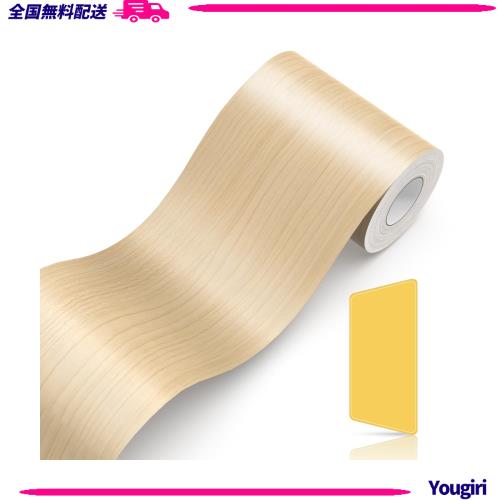 【貼りやすい剥がせる壁紙シール】木目調テープの裏面に粘着剤が付いており、そのまま貼り付けられる。貼ってはがせる木目シートですが、しわや破れなどになりにくいタイプで、キレイに貼れます。10cmの幅で、初心者一人でも簡単で仕上がります、賃貸でも安心にご利用いただけます。