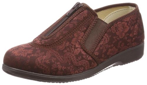 [エルダー] 婦人 介護 靴 ファスナー 脱ぎ履きしやすい かかとが踏める ストレッチ素材 柔らかい 幅広 4E 快適 シューズ くつろぎ KE329 レディース マロン 24.5 cm