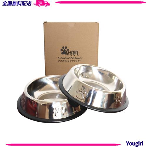 THAIN ペットボウル お皿 犬 猫 ペット用 ステンレス製 こぼれにくい 餌入れ 水入れ 滑り止め 犬食器 猫皿 可愛い肉球柄 2点セット (S)