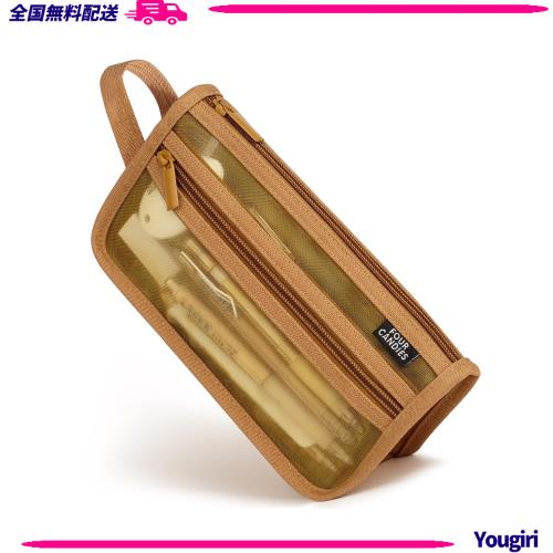 Four Candies ペンケース 筆箱 透明 メッシュポーチ 大容量 ハンドルとジッパー付き クリアダブルレイヤー筆箱 マーカーポーチ 旅行化粧