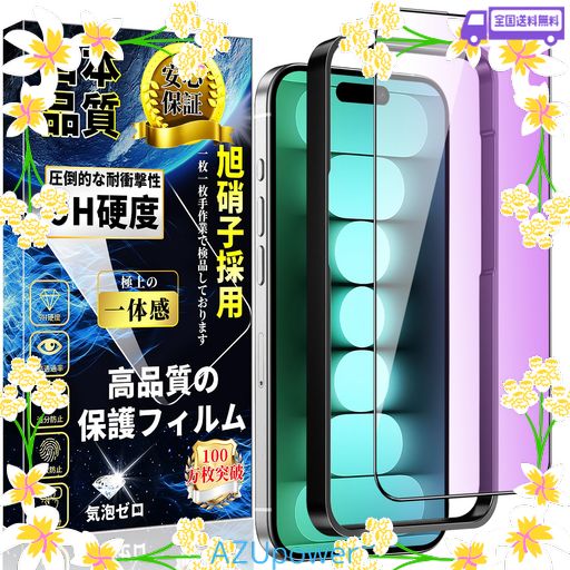 対応 IPHONE 15PROMAX ブルーライトカット ガラスフィルム IPHONE15 PROMAX ガラスフィルム 目の疲れ軽減 全面保護フィルム【ガイド枠付き・1枚】日本旭硝子製 指紋防止 飛散防止 硬度9H 貼り付け…