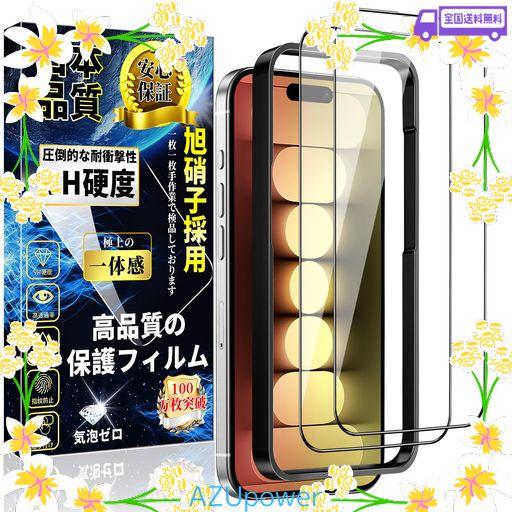 対応 IPHONE15 PRO 全面保護フィルム IPHONE 15PRO ガラスフィルム 全面保護 液晶保護フィルム【ガイド枠付き・2枚】日本旭硝子製 指紋防止 飛散防止 硬度9H 貼り付け簡単 自動吸着 気泡防止 撥…