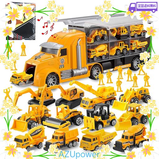 【大人気な建設車両おもちゃセット登場!】大きい音楽収納車X 1、ミニカーセットX 12 、80X70CMマップX 1、ABS製ミニ建筑労働者X 12、高品質合金とABSから作っています。安全な素材で、壊しにくいし長持ちになります。