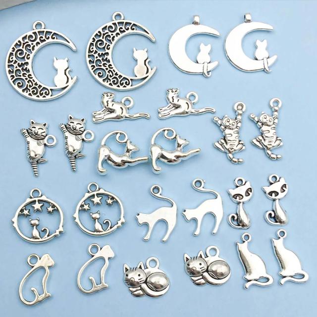 DIY用 穴あき 猫チャームパーツ 24個セット販売 ペットショップ ねこ キャット アニマル 動物 各1ペア 12種類 メンズ レディース ペンダントトップ 男性 女性 クラフト 銀色 シルバー 真鍮 部品 金具 手作り