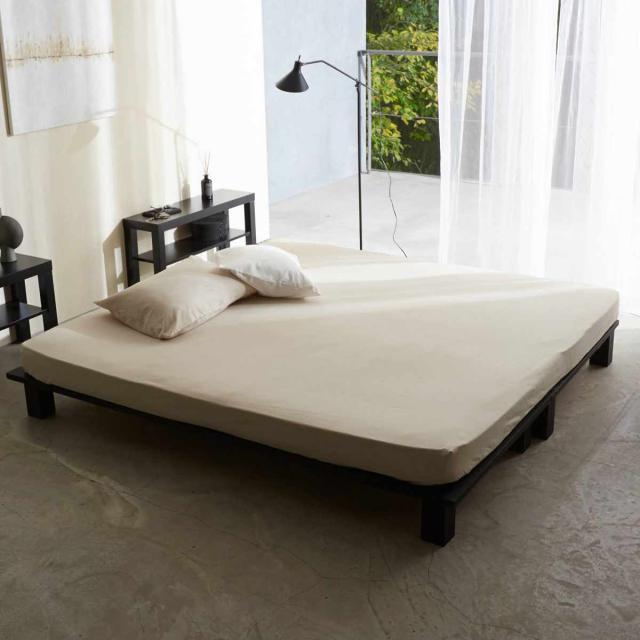 ワイドキングサイズはシングルサイズ2台分。シングルサイズのマットレス2台を、ワイドキングのボックスシーツ1枚で包むことができます。1枚ですっぽりと覆えて一体感があり、すっきりとした見た目。また、隙間ができにくいので安心してお休みいただけます。
