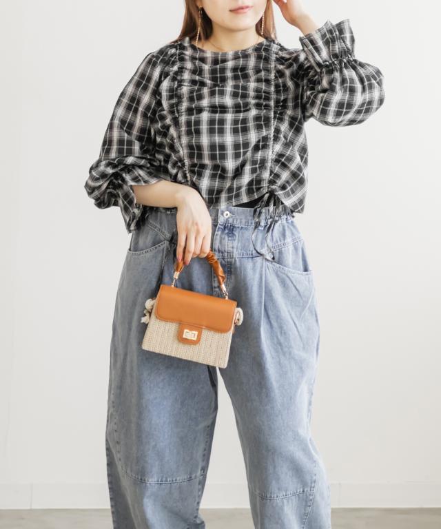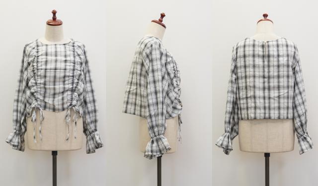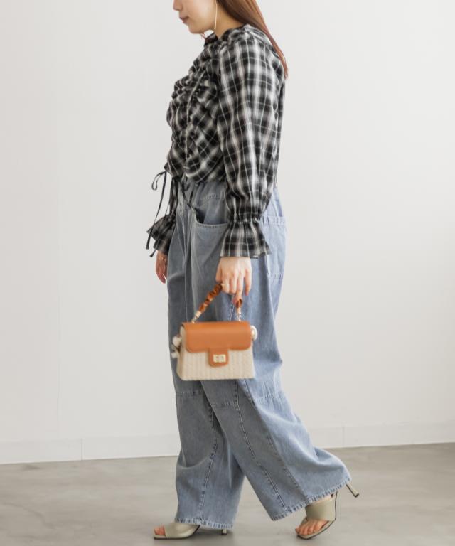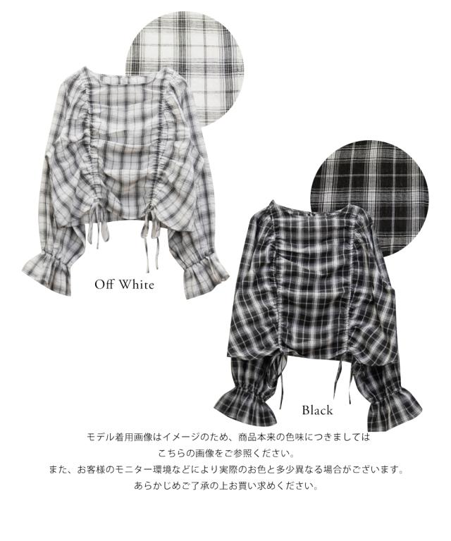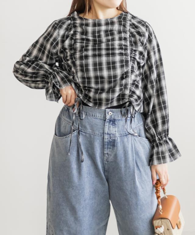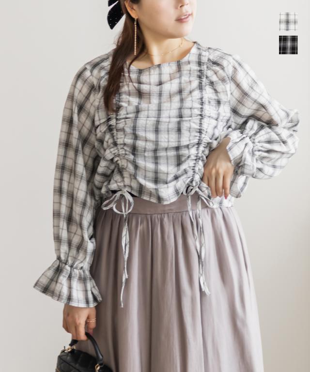 大きいサイズ/レディース/3L/4L/チェック柄ドロストリボンブラウス