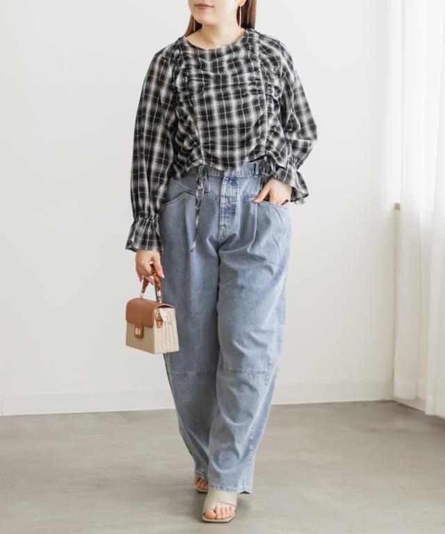 | 3Lを着てちょうどいいサイズでした。さらりとした肌触りだから、季節の変わり目とかも快適に過ごせそうです!くしゅっとしたシャーリングデザインで、前着丈を好みのながさに短くできます!丈が短いと足が長く見えて、裾をインしなくていいので、お腹のポッコリもカバーしてくれます♪おとなっぽいモノトーンのチェック柄がどんなボトムにも合わせやすく、着回し力抜群の1枚です!腕まくりもできるので、春は1枚でさらっと着て、秋冬は中にインナーを着てもいいので長く使えそう♪ |