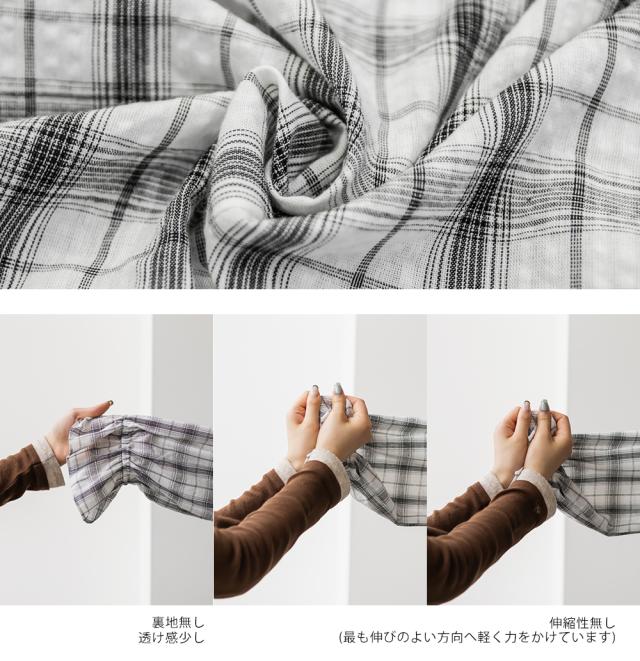 | 裏地無し、透け感わずかに有り、伸縮性無し |