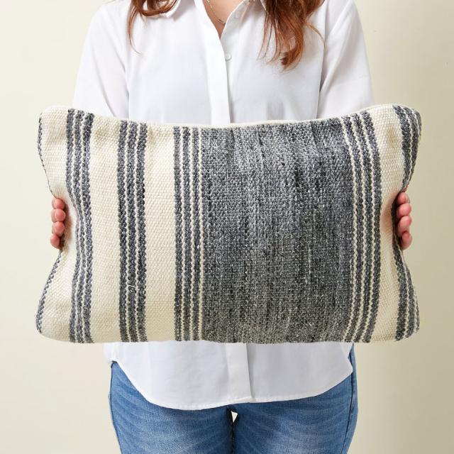 クッションカバー キリム柄 30×50cm ボーダー柄 インド 長方形 横長 クッション用カバー ピロー 背あて 背当て ソファ ベッド アウトドア 車内 おしゃれ かっこいい サーフ アメリカン ミッドセンチュリー ヴィンテージ 西海岸[34479]