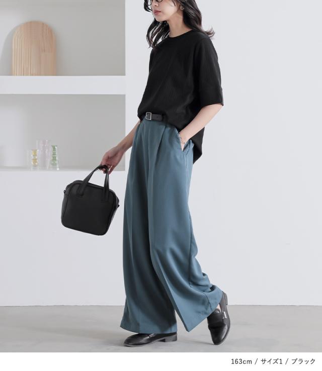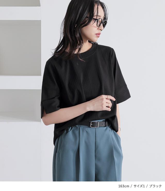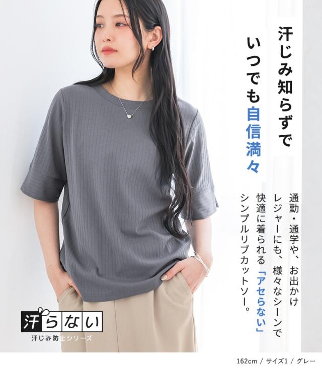 【新色登場】『汗ジミ軽減ワイドリブカットソー』※メール便可※【10】[カットソー レディース トップス 半袖 Tシャツ 汗染み防止 ワイドリブ スリット クルーネック 二の腕カバー 春 夏]