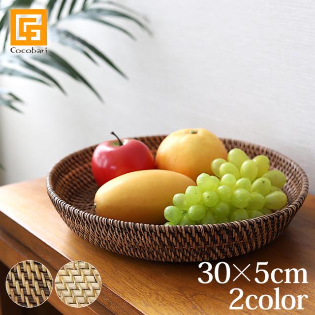 ラタンバスケット ラウンド浅型 Lサイズ(30×5cm) アジアン バリ リゾート ラタン 籐 南国リゾート ナチュラル テーブルウェア 自然素材