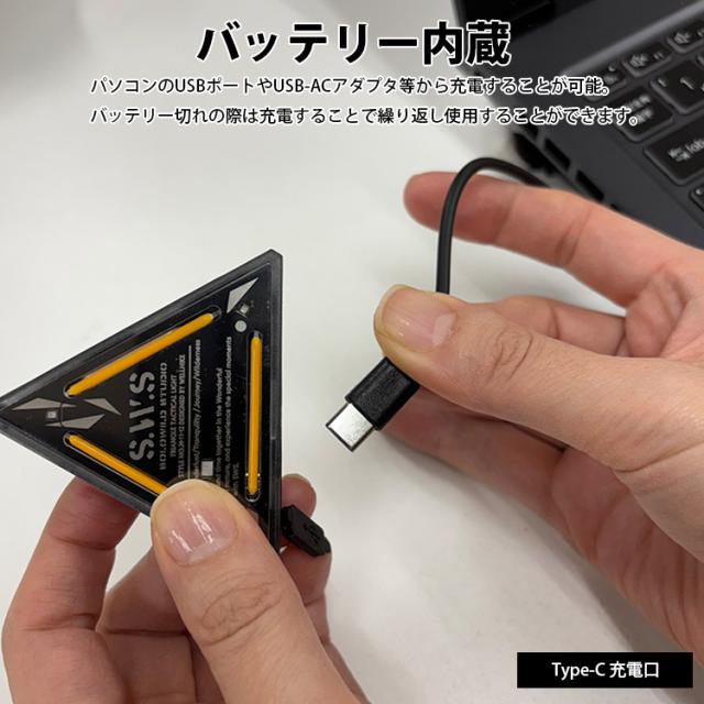 LEDライト 吊り下げライト マグネット アウトドア 警告灯 充電式 キャンプ USB-C ストラップ付き 磁石 軽量 小型 夜間 点灯モード切替 釣り PR-TRIANGLIGHT【メール便 送料無料】