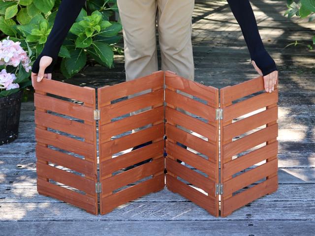 好きな時に出してしまえる折り畳めるウッドミニフェンス1枚組です。ボーダーの天然木フェンスは、爽やかでナチュラルな風合いが魅力です。立ち入りを制限したい場所や道路・花壇・駐車場、お隣との境目など様々な場所でお使いいただけます。
