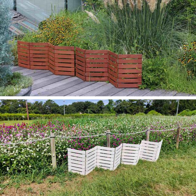 ジグザグ、コの字型、四角形など用途に合わせて曲げて設置できるので、理想の庭づくりが実現します。プランターカバーとしてや、繊細な植物の保護、景観を損なうものの目隠しに。また、ペットの飛び出し防止に使ったり、殺風景なベランダをおしゃれに変身させたりと、アイデア次第で様々な場所で活躍します。