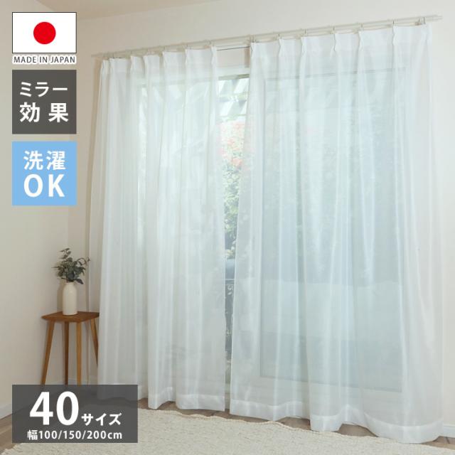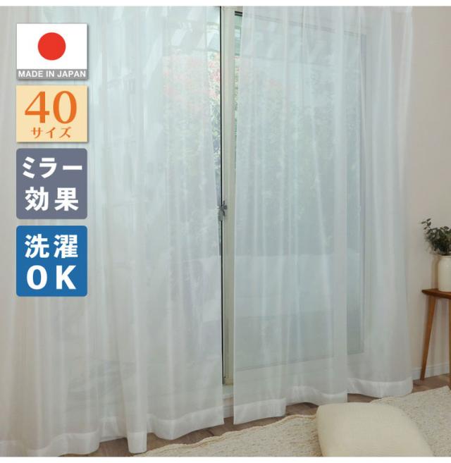 ミラーレースカーテン 日本製 40サイズ 幅100 幅150 幅200 レースカーテン 無地 シンプル 洗濯OK 賃貸 採光 国産 洗える カーテン(代引不可)【送料無料】