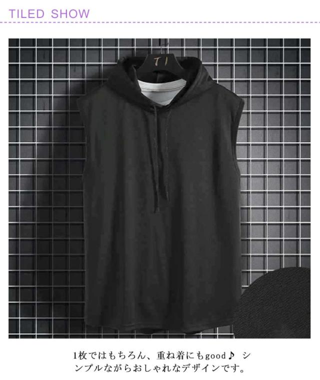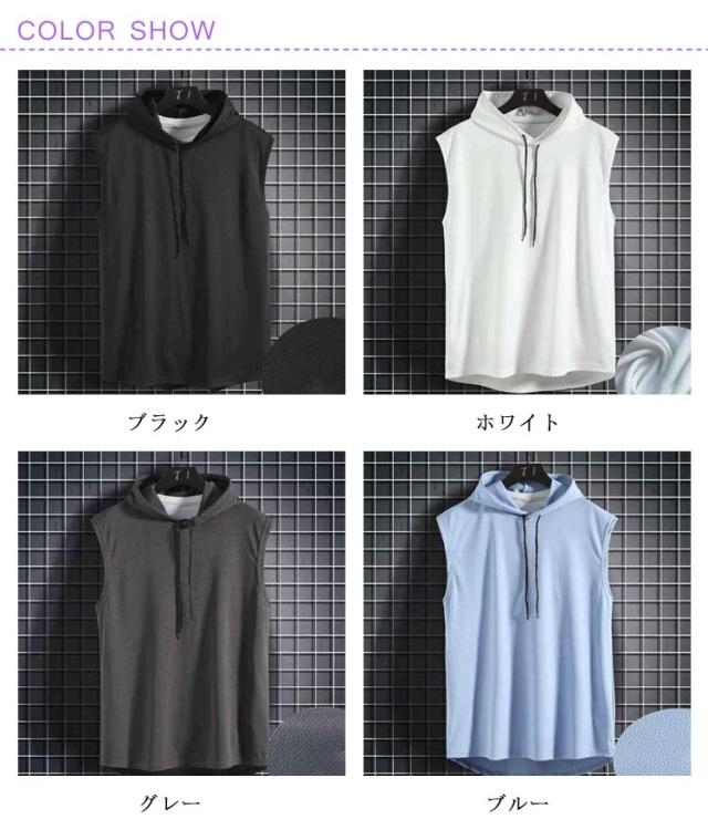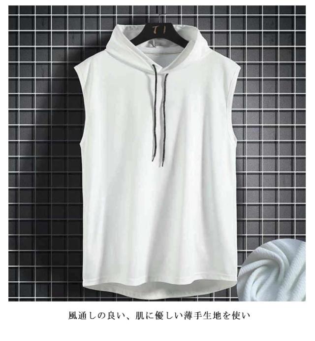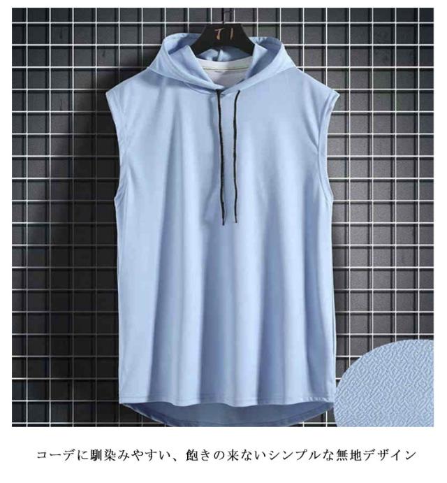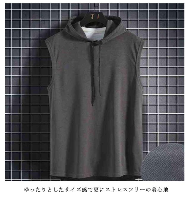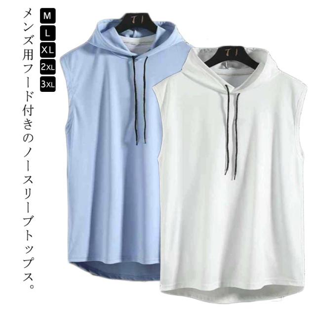 ノースリーブ tシャツ フード付き メンズ タンクトップ 夏 カットソーノースリーブ トップス プルオーバー サマーパーカー 袖なし 無地 ノースリーブtシャツ ゆったり フード付きタンクトップ 男性 夏Tシャツ 薄手 パーカー お洒落 ヒップホップ ストリート風 送料無料