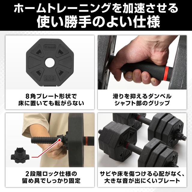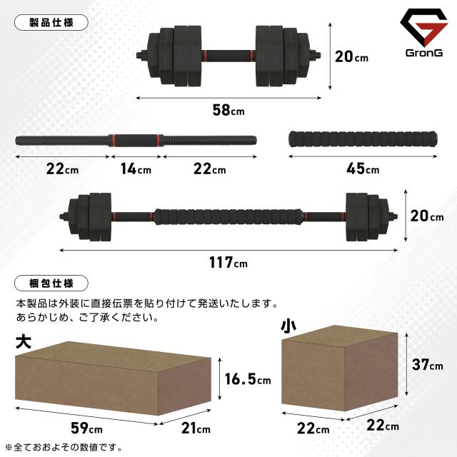GronG ダンベル 可変式 20kg 2個セット バーベルセット 筋トレ トレーニング