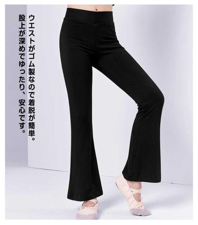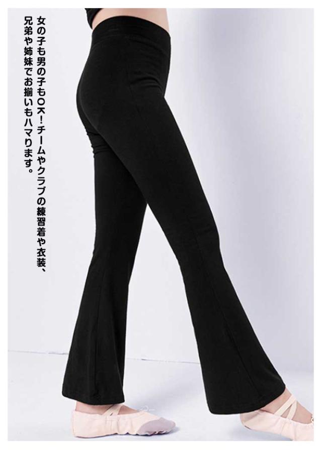 ダンスパンツ キッズ ジャズパンツ 子供用 キッズ ジャズダンス ストレッチ ウェア ダンス パンツ ヨガパンツ ロングパンツ フィットネス フレア 脚長 美脚パンツ ダンス衣装 バレエ 新体操 レッスン ジュニア 男の子 女の子 大きいサイズ ブラック 黒 送料無料