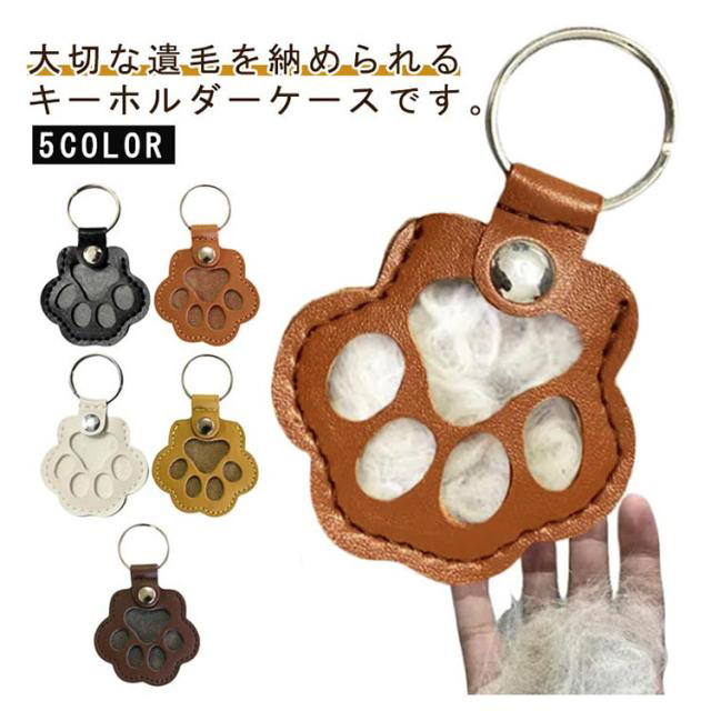 | 大切な遺毛を納められるキーホルダーケースです。 かわいい肉球デザインで、おしゃれなアクセサリーとしても楽しめます。 遺毛を大切に保管できるデザインになっており、ペットとの絆をいつまでも感じられます。 カラフルなバリエーションからお好みの色を選べるので、個性を表現するのにも最適です。 いつでも一緒にお出かけ!周りの人にも配慮した身に着けやすいデザイン。女性・男性性別問わず持ち歩きやすい。 | |
