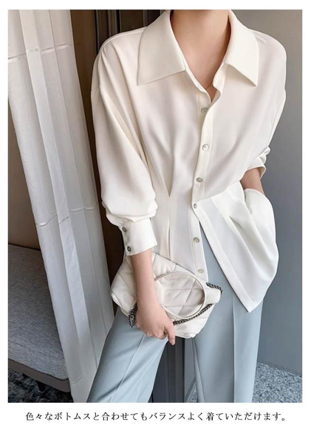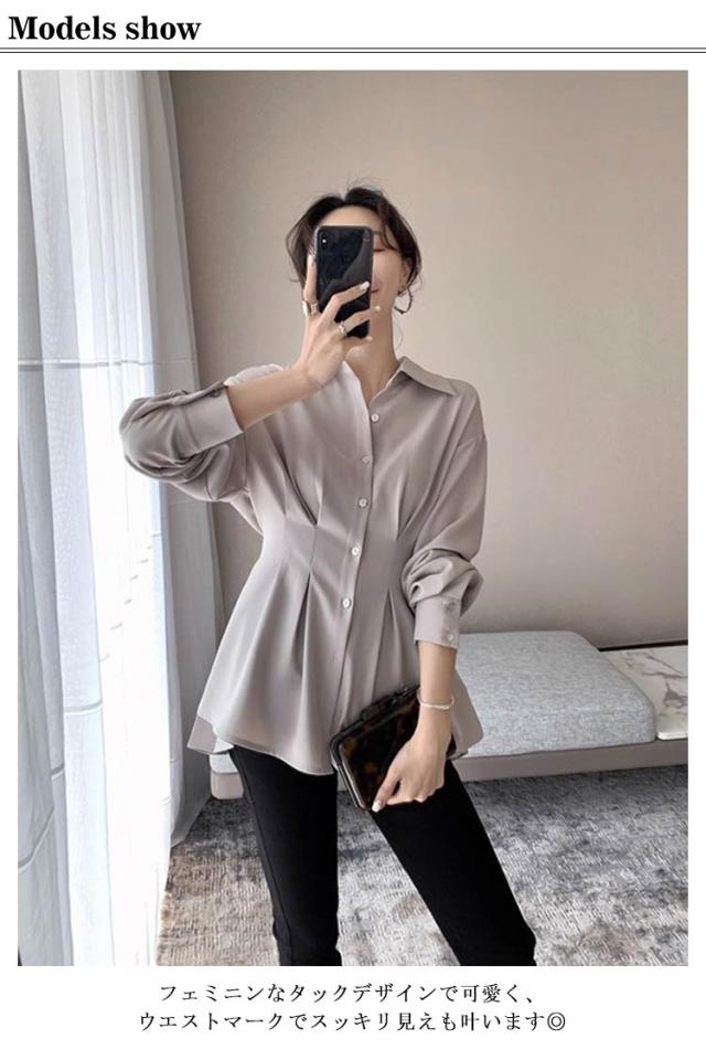 シャツ レディース 長袖 シャツ トップス バックプリーツ タック入り 体型カバー オフィス スーツインナー きれいめ カジュアル オフィスカジュアル お仕事 通勤 ビジネス OL 韓国ファッション 春 秋 冬 送料無料
