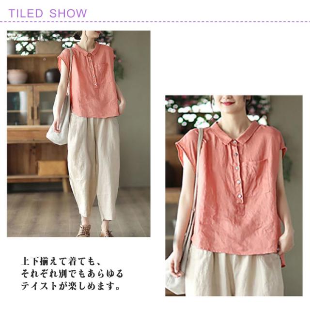 リネン セットアップ レディース パンツ トップス ブラウス シャツ ワイドパンツ 春 夏 カジュアル リネンパンツ イージーパンツ 夏用 40代 半袖 上下セット 綿 麻 ウエストゴム きれいめ 涼しい 部屋着 お洒落 ゆったり 体型カバー 無地 送料無料