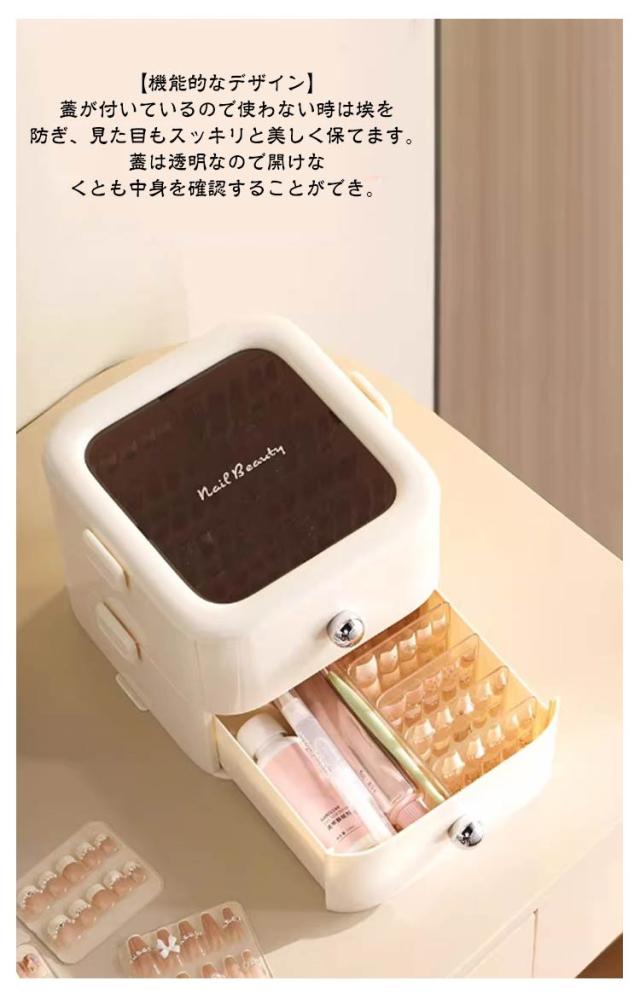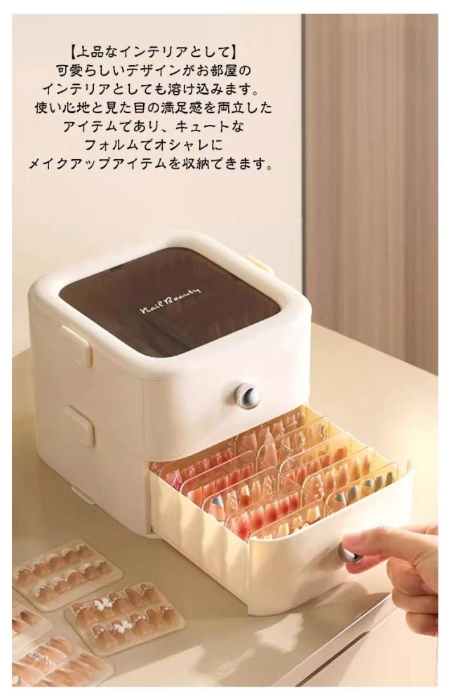 付け爪収納 つけ爪収納 ボックス ネイル収納 引き出し型 収納ケース 固定テープ付き ネイルアート道具 コスメ メイク 積み重ね可能 ネイルアクセサリー容器 引き出し小物 大容量 小物収納 化粧品入れ おしゃれ