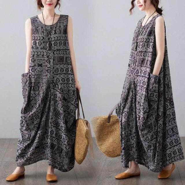 ノースリーブワンピース マキシワンピース ゆったり 通勤 OL 着痩せ 30代 ロング丈ワンピース ワンピース オシャレ レディース 韓国風 エスニック風 40代 春夏