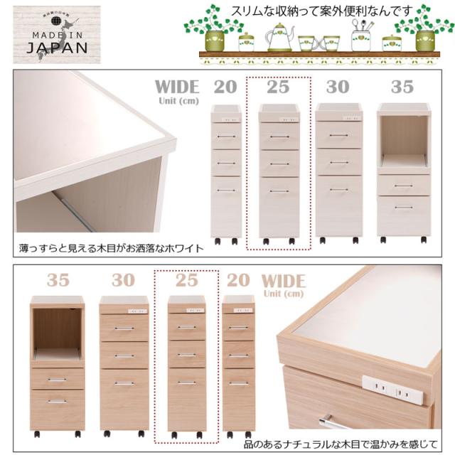 スリムワゴン ステンレス天板 幅25 スリムラック おしゃれ シンプル 隙間収納 日本製