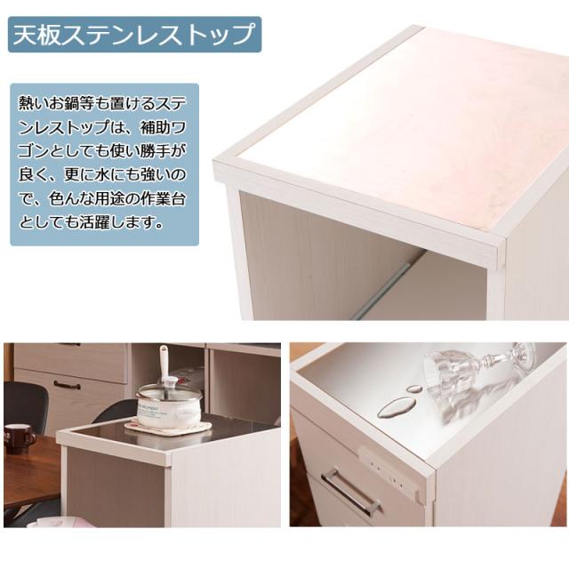 今まで足りなかった作業スペースや収納スペースをこれ1台で解決!ストレスなく料理ができる、うれしいキッチンアイテム。キッチンだけでなくデスクサイドやランドリーにもあらゆるシーンに対応。取っ手は持ち手部にマットなアルミ材を使用し高級感あります。ステンレストップで水に強く、機能ともに優秀なカウンターワゴンです。