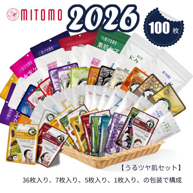【新商品の販売】うるツヤ肌パック 福袋100枚 集中保湿フェスパック 美容マスク 1日1枚で美肌習慣 潤いたっぷり 全商品からランダム構成 [LBSH000100A]