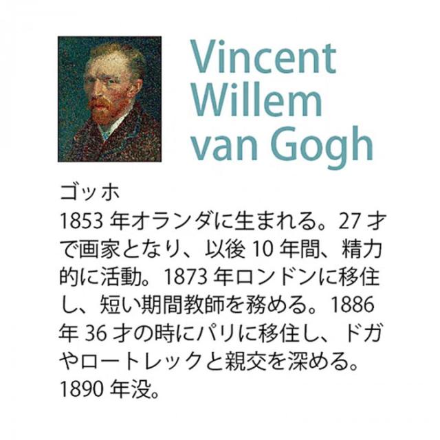 | 絵と額がセットになった商品です。人気の名画にカラフルなモザイク加工を施したアートです。一際目を引くモダンアートへ進化したスペシャルなアートをゴージャスなフレームにセットしました。 作家:ゴッホ(オランダ男性作家) 1853年オランダに生まれる。27才で画家となり、以後10年間、精力的に活動。1873年ロンドンに移住し、短い期間教師を務める。1886年36才の時にパリに移住し、ドガやロートレックと親交を深める。1890年没。 |