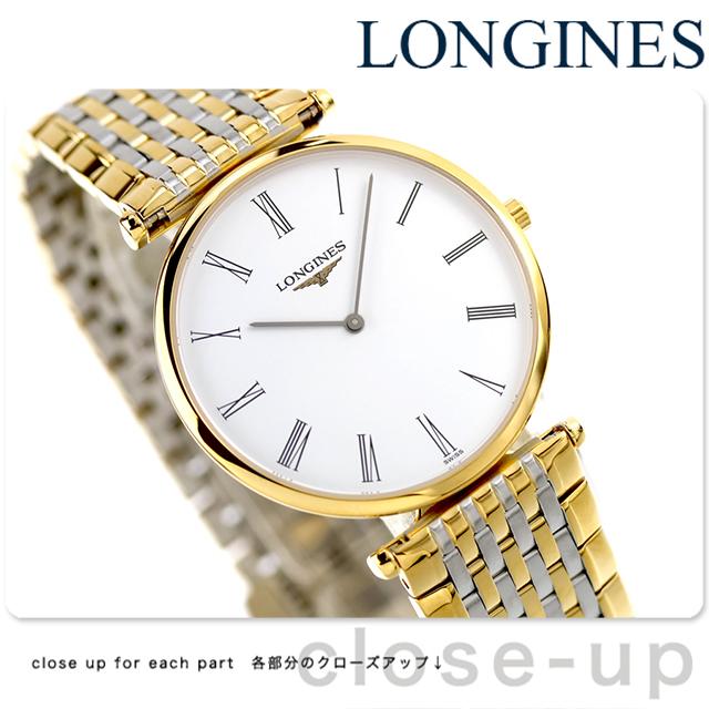 ロンジン グランクラシック クォーツ 電池式 腕時計 ブランド レディース LONGINES L4.709.2.21.7 アナログ ホワイト ゴールド シルバー 白 スイス製 おしゃれ 防水 かわいい プレゼント 女性 実用的