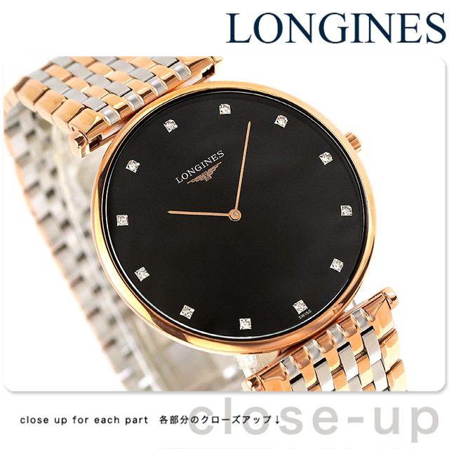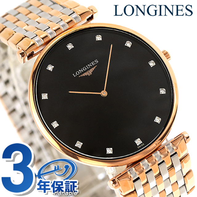 ロンジン グランクラシック クォーツ 電池式 腕時計 ブランド メンズ LONGINES L4.766.1.57.7 アナログ ブラック ゴールド シルバー 黒 スイス製 おしゃれ 防水 プレゼント 男性 実用的