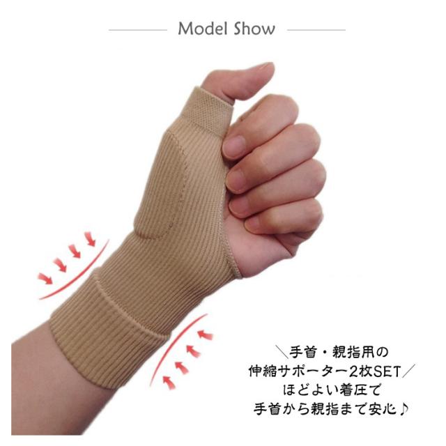 手首 固定 サポーター 男女兼用 2枚組 左右兼用 腱鞘炎 ベージュ パッド内蔵 伸縮 黒 捻挫 親指 母指CM関節症 リストラップ 着圧 バンド テーピング 絆創膏 剥がれ防止