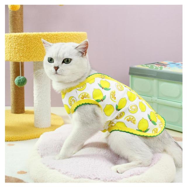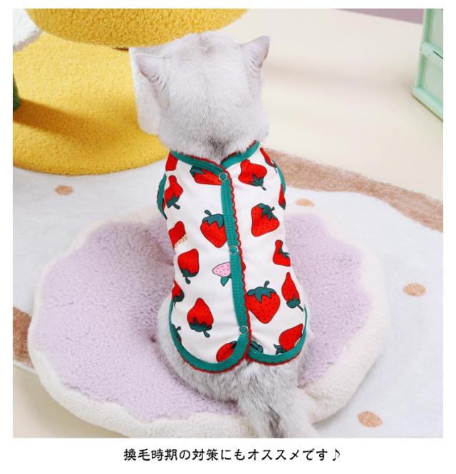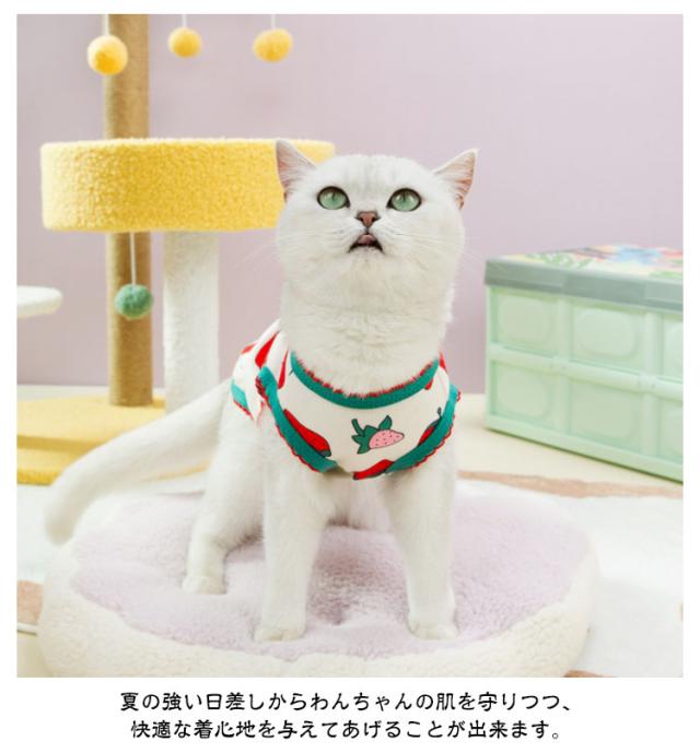 ペット服 お部屋着 背中開き 可愛い お洒落 タンクトップ 猫服 薄手 ベスト 男の子 いちご柄 犬服 レモン柄 柔らかい 暖かい 抜け毛防止 犬用 猫用 洋服 着せやすい 女の子 インスタ映え 小型犬 犬服 ペットウェア ドッグウェア