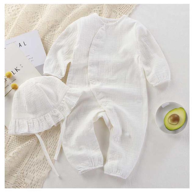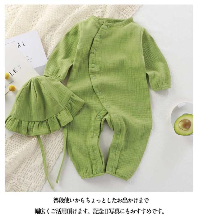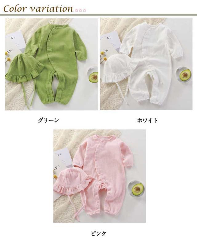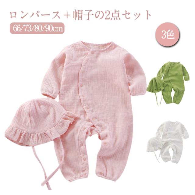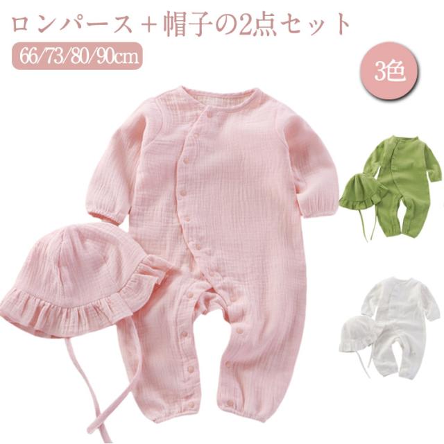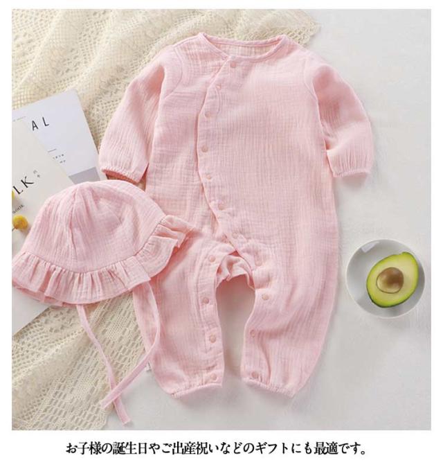 2点セット 帽子付き カバーオール 長袖 ロンパース 綿 ロンパース 90 80 男の子 ダブルガーゼ ベビー 子供服 ロンパース 赤ちゃん 新生児服 女の子 66 73 コットン ベビー服 出産祝い 北欧 春物 夏物 春夏 部屋着