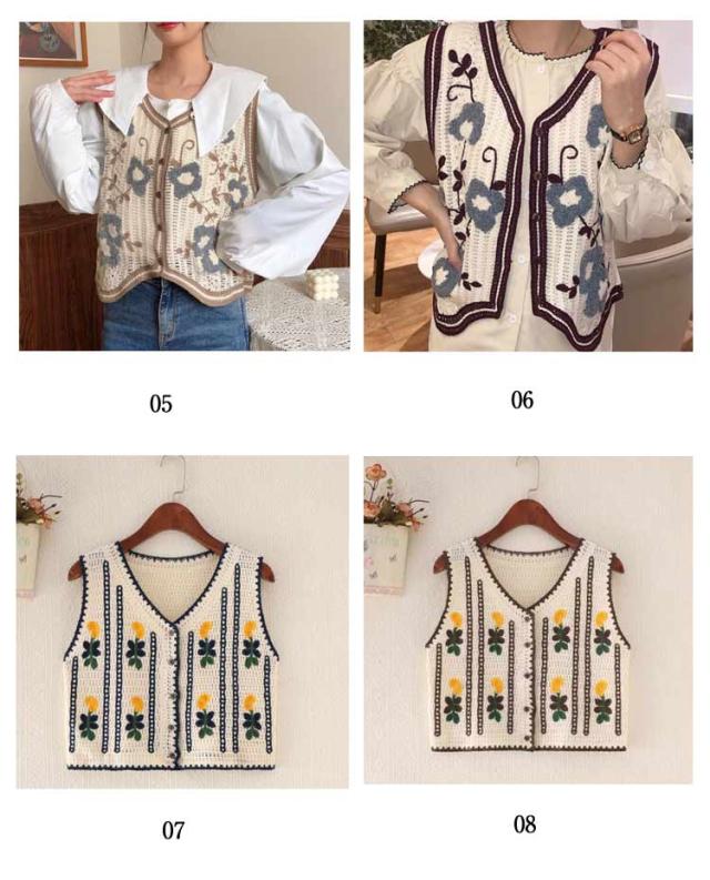 全20柄 20代 30代 レディース 透かし編み 柄 かぎ編み ジレ エスニック 大きいサイズ 花柄 刺繍 トレンド風 かぎ針 ベスト 全20柄 春 春夏 人気 カジュアル