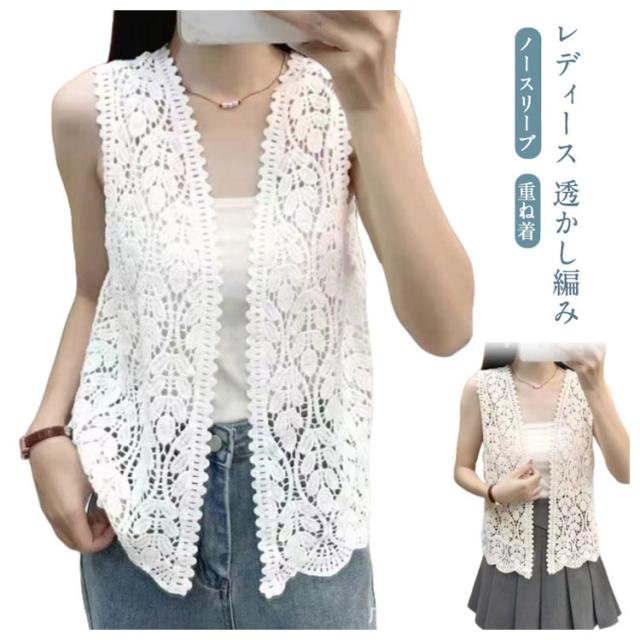 ベスト ベスト サマー レディース レディース レディース べスト ニット ジレ ベスト レディース 前開き トップス ジレ 大きいサイズ おしゃれ ベスト 春夏 ミドル丈 透かし編み ノースリーブ