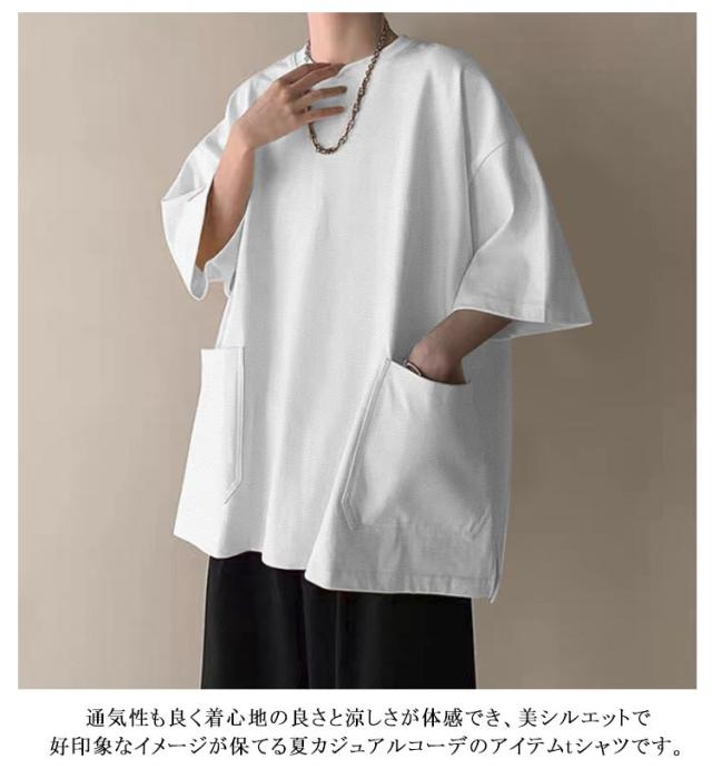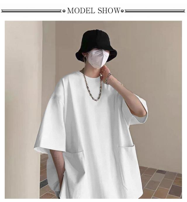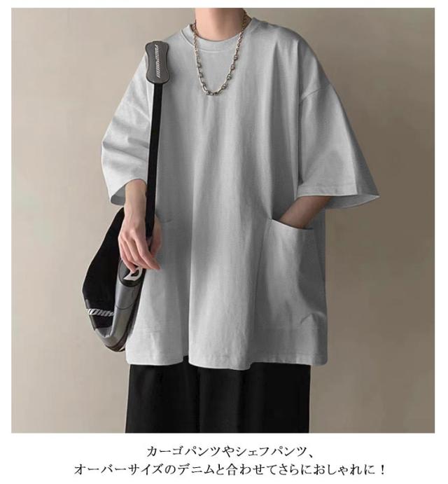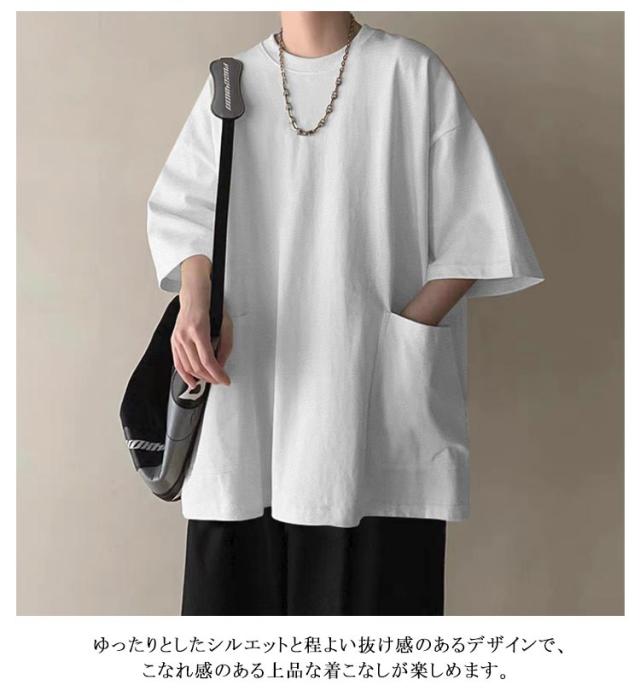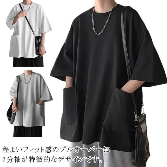 オーバーサイズ tシャツ 七分袖Tシャツ ストリート トップス メンズ ビッグtシャツ 大きいサイズ 無地 シンプル 夏 カットソー インナー Tシャツ Tシャツ カジュアル 普段着 体型カバー