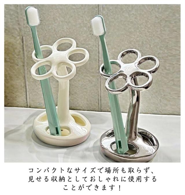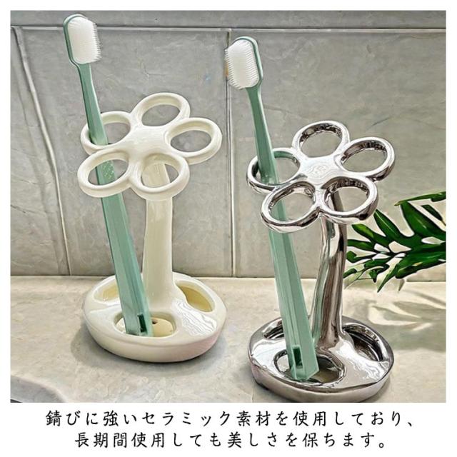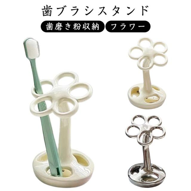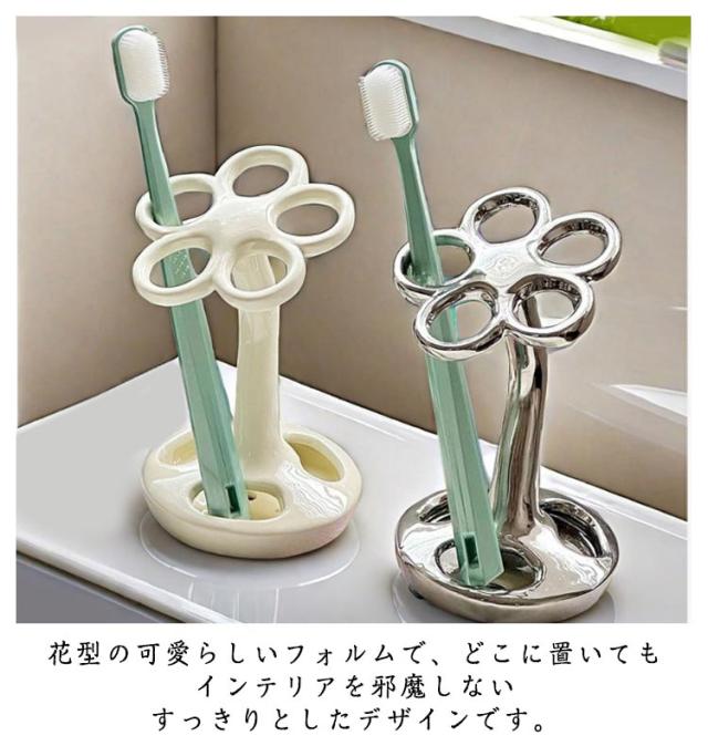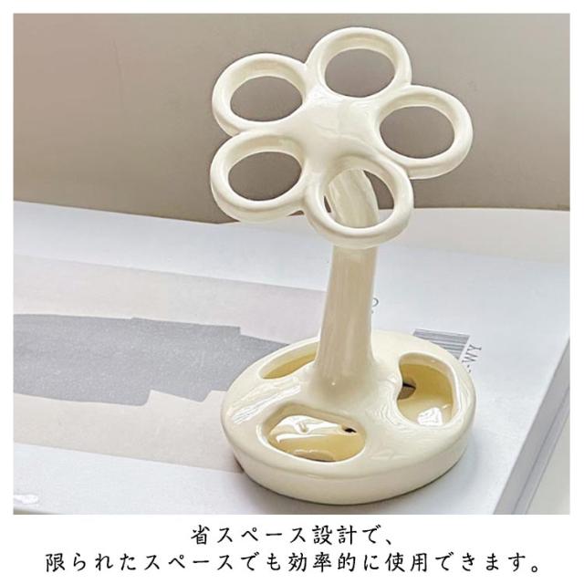 歯ブラシ置き セラミック製 歯磨き粉収納 フラワー シンプル 歯ブラシ立て 歯磨き粉ホルダー 歯ブラシホルダー ブラシ入れ 電動歯ブラシホルダー ハブラシ ホルダー スタンド インテリア おしゃれ フラワー シンプル
